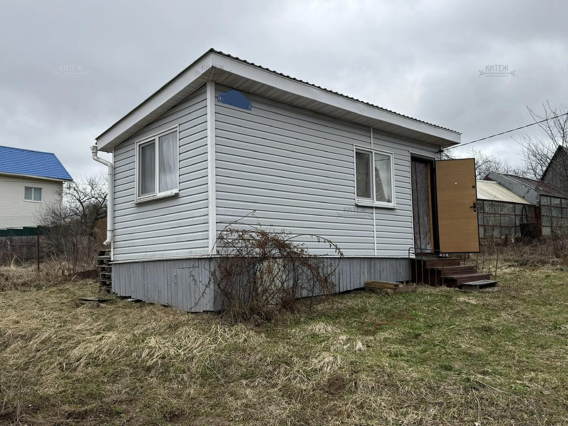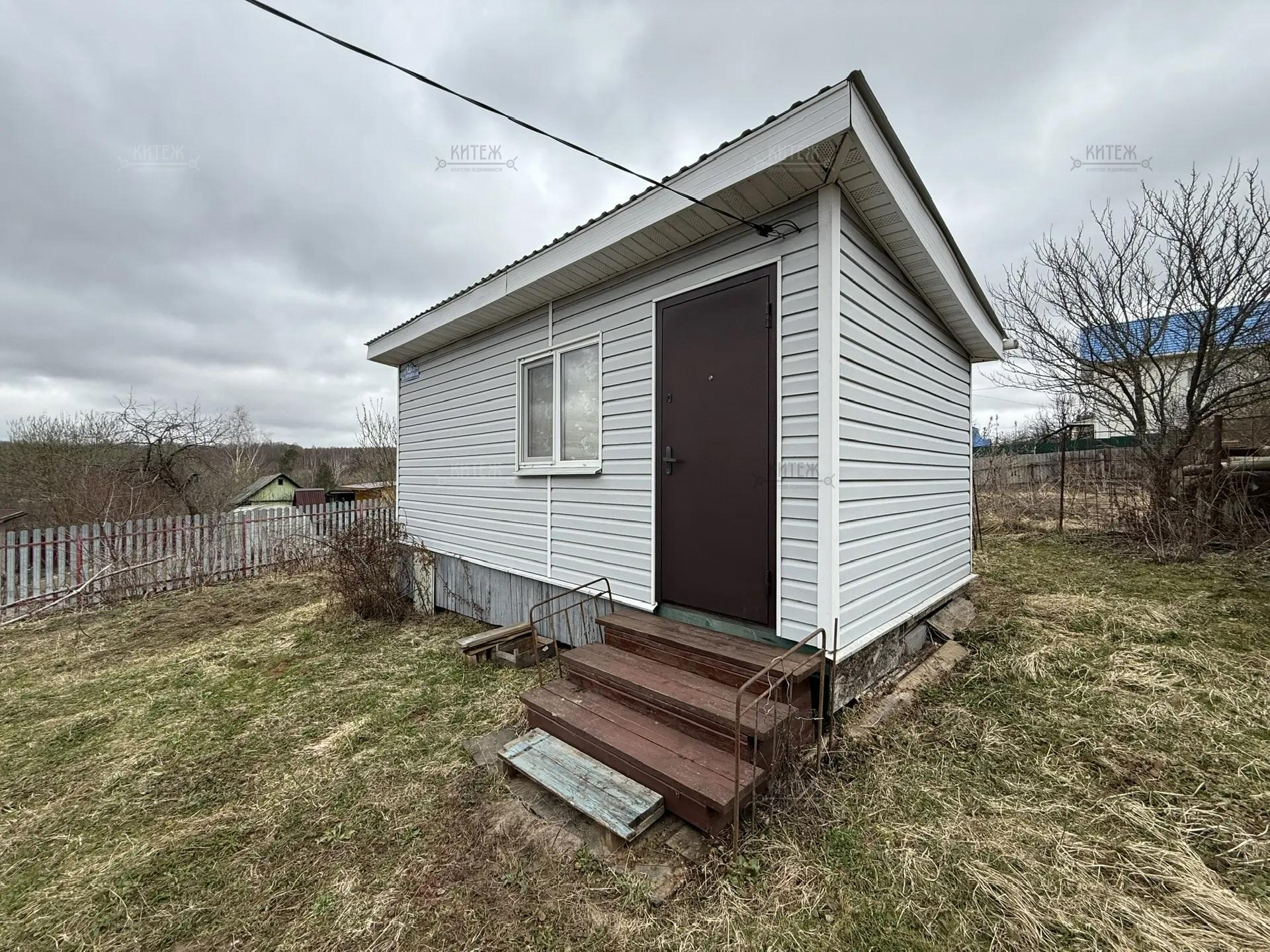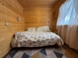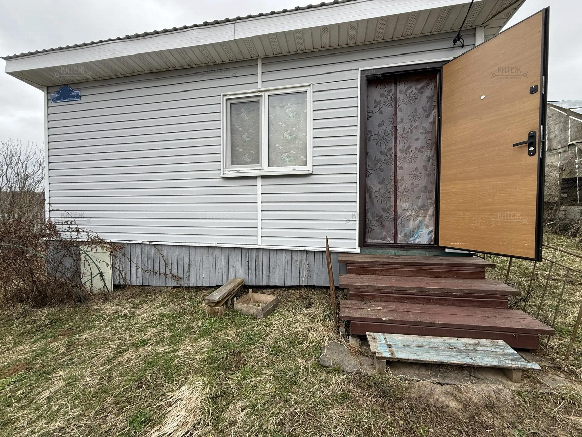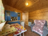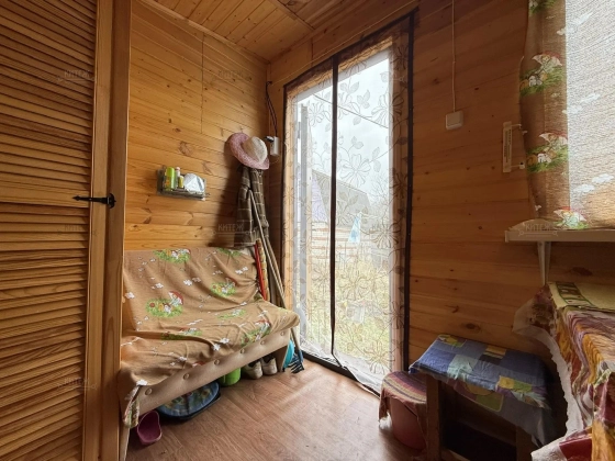 На участке расположен небольшой деревянный дачный домик площадью 22, 7 квадратных метра. Дом разделен на две комнаты - кухню с небольшим гарнитуром и комнату для отдыха. Окна ПВХ. Свет заведен в дом. Дом 2018 года постройки.