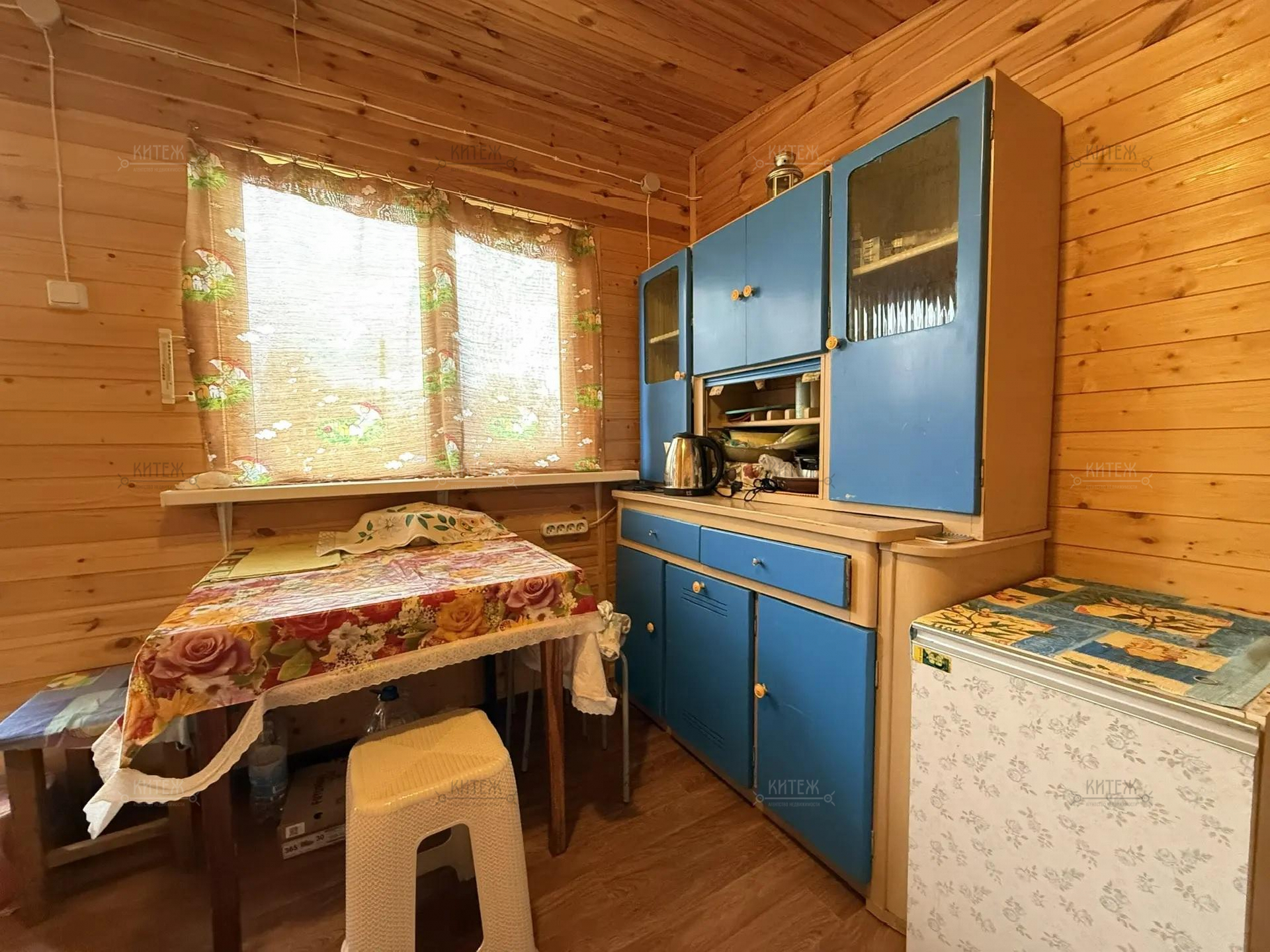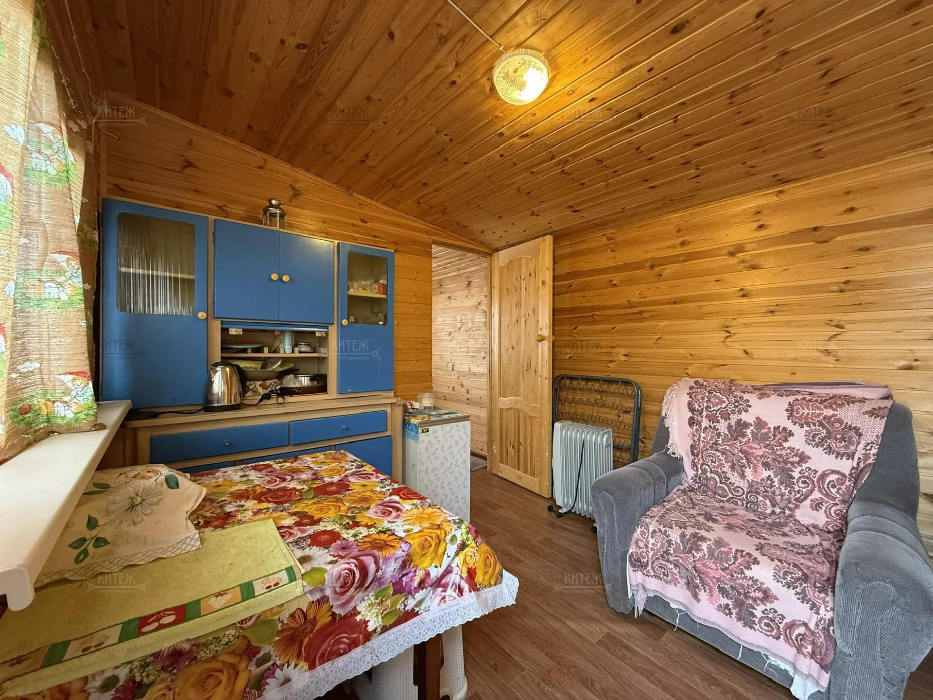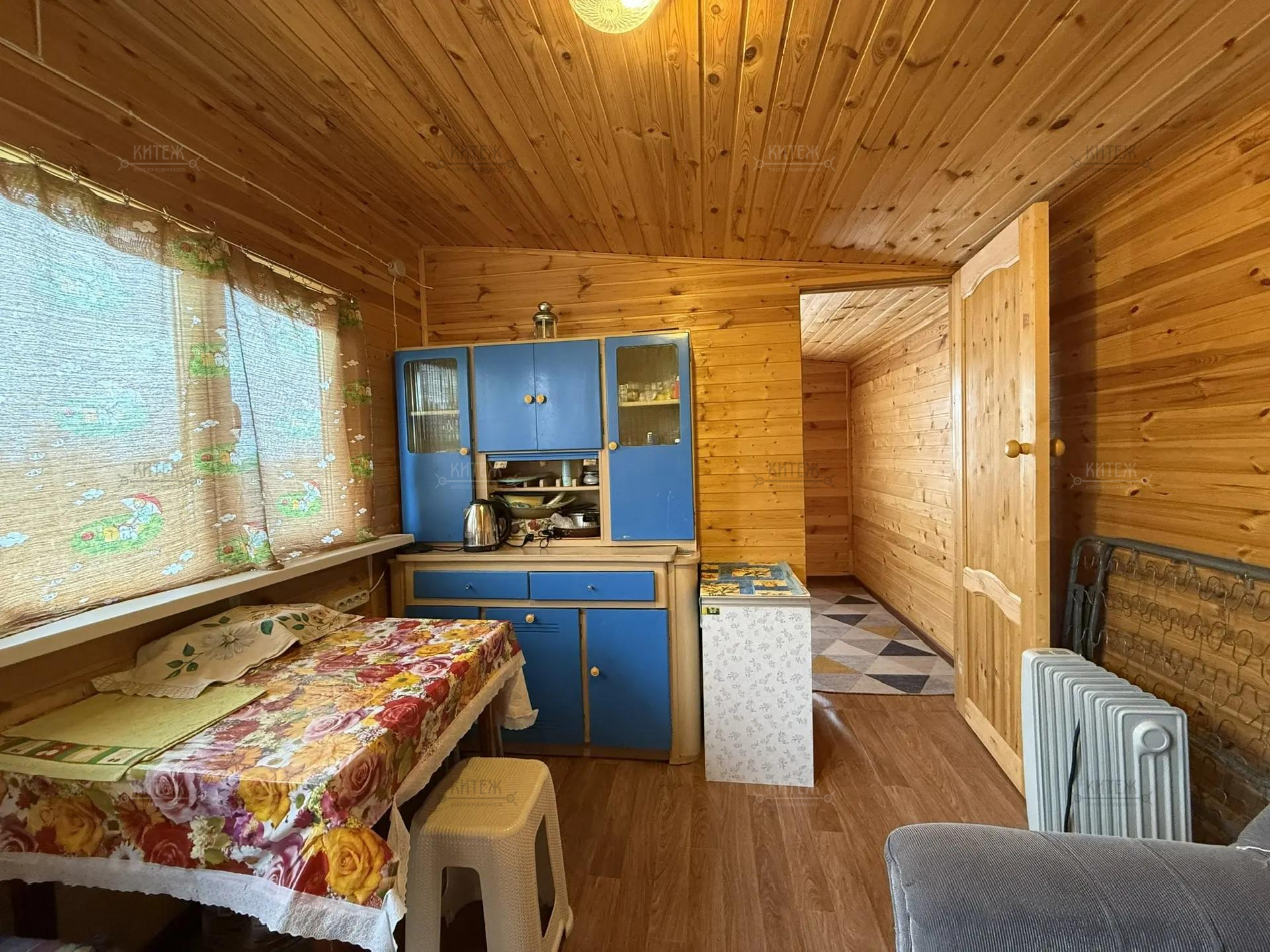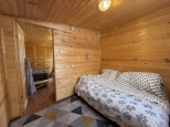 На участке расположен небольшой деревянный дачный домик площадью 22, 7 квадратных метра. Дом разделен на две комнаты - кухню с небольшим гарнитуром и комнату для отдыха. Окна ПВХ. Свет заведен в дом. Дом 2018 года постройки.