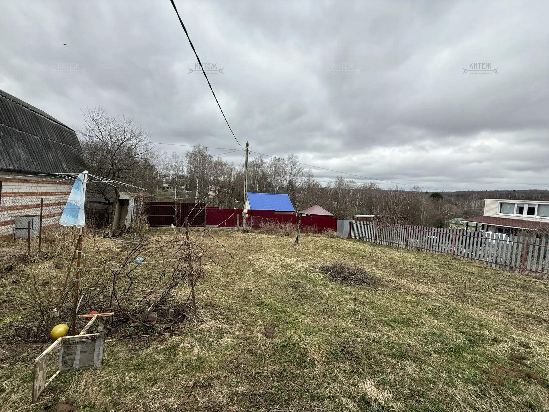 Расположен на возвышенности - всегда сухой. С участка открывается вид на лесополосу.