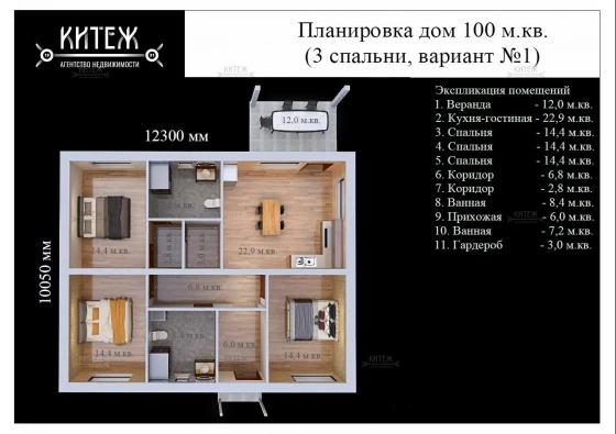 Очень удобная планировка с 3-мя отдельными комнатами, кухней-костиной 23 кв.м., двумя санузлами и гардеробной. Есть полноценное чердачное помещение.