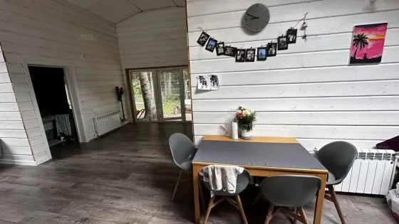 В доме 3 изолированные спальни, большой совмещенный санузел, кухня-гостиная.