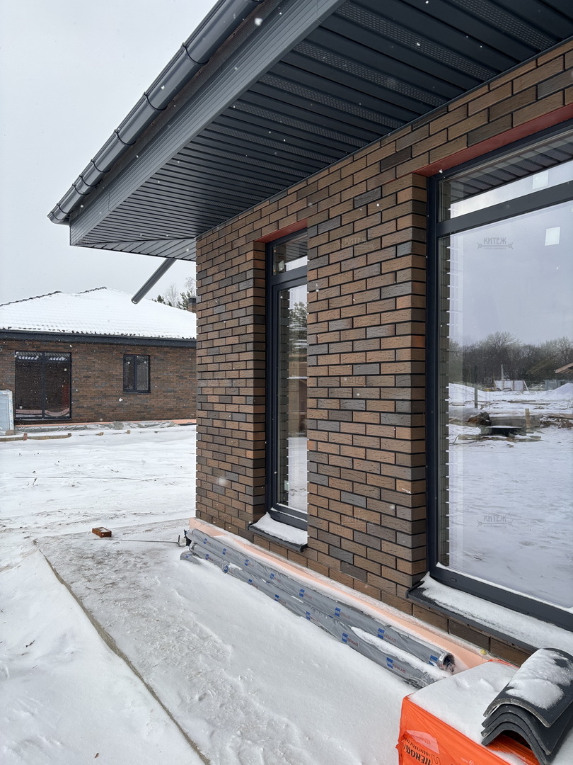 Окна Veka Softline Premium 70 мм, ламинированные снаружи. Водосточная система. Снегозадержатели. Закладные под коммуникации. Дренажная система. Закладные под коммуникации.