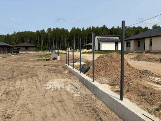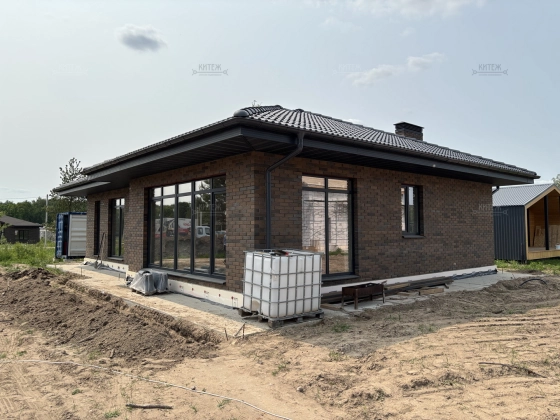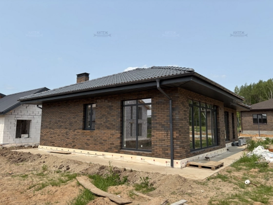 Фундамент: монолитная ж/б плита со вторым слоем армирования. Крыша: натуральная цементно-песчаная черепица фирмы Braas. Утеплённая отмостка из бетона 1,2 м. Бетон на гравии марки M300 и выше.