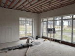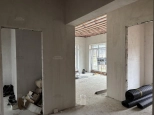 Выполнена черновая внутренняя отделка. Возведены все межкомнатные перегородки. Стены оштукатурены методом механизированной штукатурки.