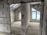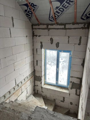 Дом построен из газоблока 400 мм D500. Фундамент - железобетонный, монолитный, комбинированный. Фасад - долговечная и неприхотливая штукатурка "Короед". Окна ПВХ Rehau 70 мм. Крыша металлочерепица. Входная металлическая дверь. Утеплённый потолок 250 мм.