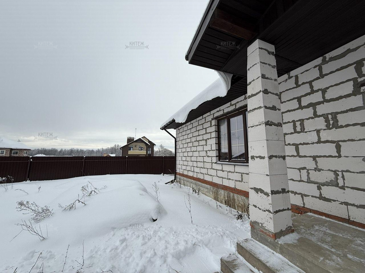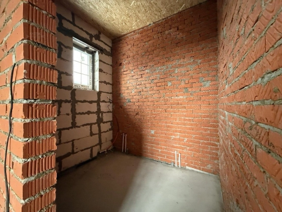 Фундамент - монолитная плита, материал наружних стен - газобетонный блок 400мм. Крыша подшита, оборудована водосточной системой. Проведено отопление, утановлены батареи, сделана разводка электрики.