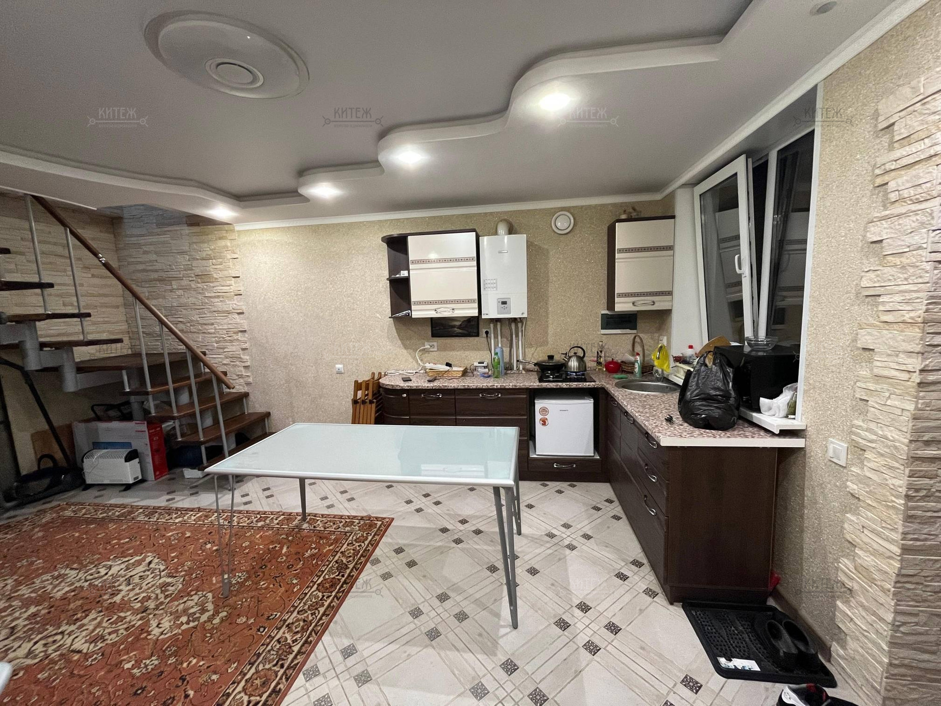 Газ, водопровод, электроэнергия - центральные коммуникации. Канализация септик. Отопление от газового котла. Мебель и техника (кондиционер, стиралка, посудомойка) остаются.