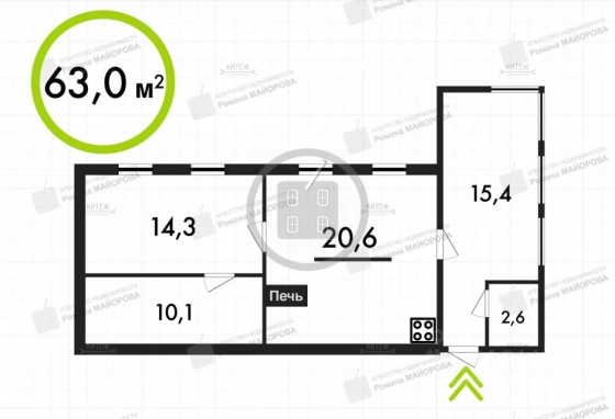 Дом расположен на участке 10 соток. Площадь дома - 63 кв.м. В доме 2 комнаты и большая кухня-гостиная (20,6 кв.м). Печное отопление. Дополнительные фото дома можем выслать по запросу.
