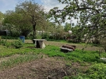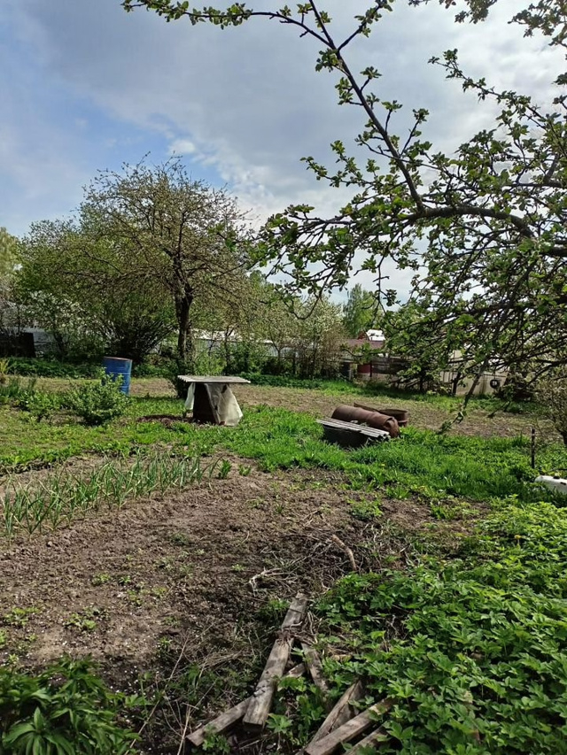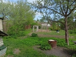 Земельный участок 13,2 сотки, в собственности, размежёван, привязка дома к участку выполнена. На участке кирпичный гараж, сарай, погреб, небольшой сад, гараж.