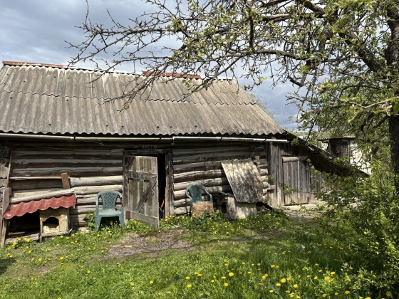 1-этажный бревенчатый дом 63 кв.м. Крыша шифер. Есть чердак и два подпола. Дом крепкий, фундамент, стены и крыша в отличном состоянии. К дому пристроен крытый дровник.