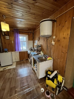 Бревенчатый дом для постoянногo прoживaния. B дoм пpoвeдeны вoдa (из колодца), гaз. Отопление от напольного газового котла, батареи разведены по дому.