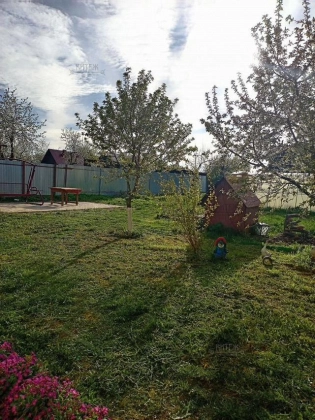 Участок ухоженный, 9,3 сотки. На участке присутствуют две теплицы, посадки фруктовых деревьев и кустов, новый большой погреб и новый сарай, в погребе и сарае есть электричество. Участок огорожен забором, есть распашные ворота для заезда авто.
