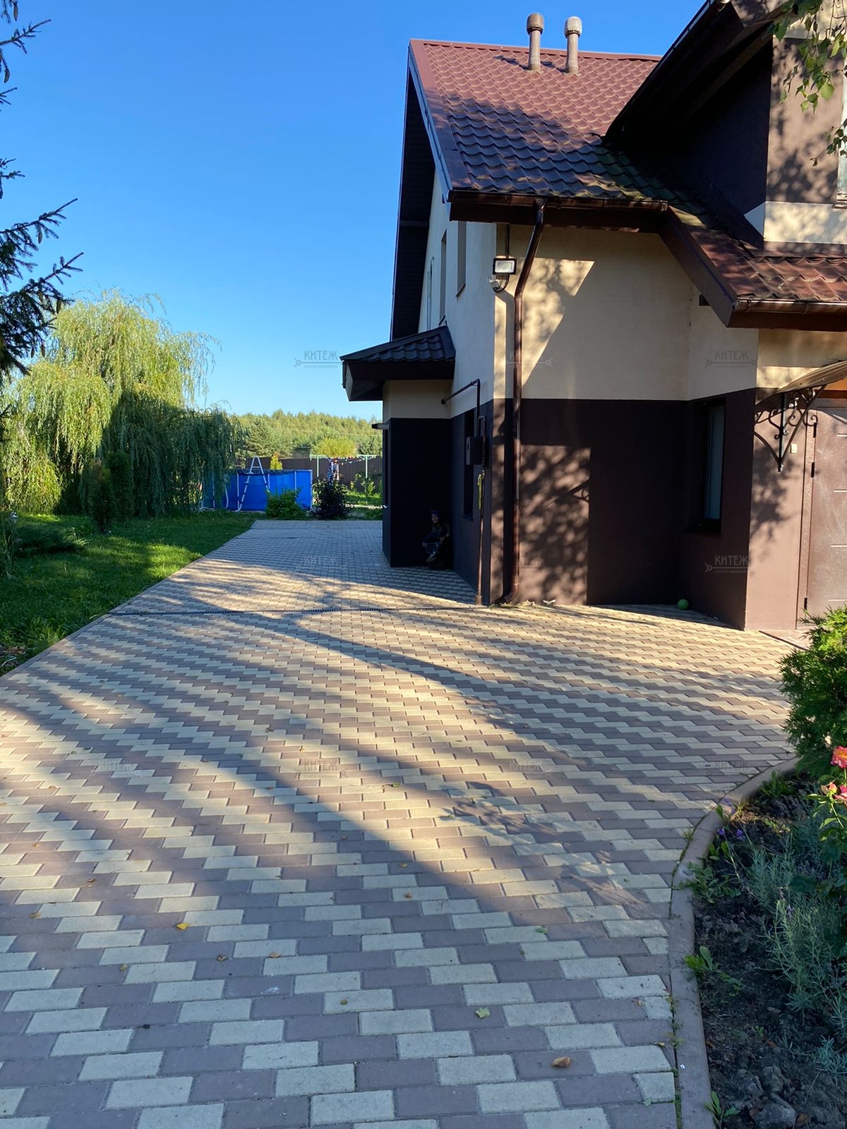 Придомовая территория выложена плиткой, освещение с датчиками движение-свет.