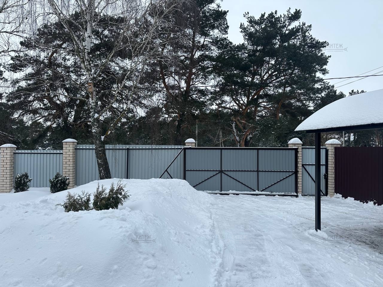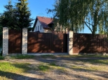Территория огорожена забором из профлиста, откатные ворота с механизмом.