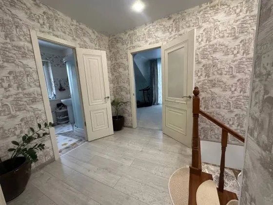 На втором этаже — гардеробная, три спальных комнаты, санузел, душевая кабина, балкон. Цифровое телевидение, интернет.