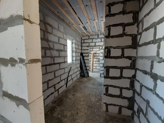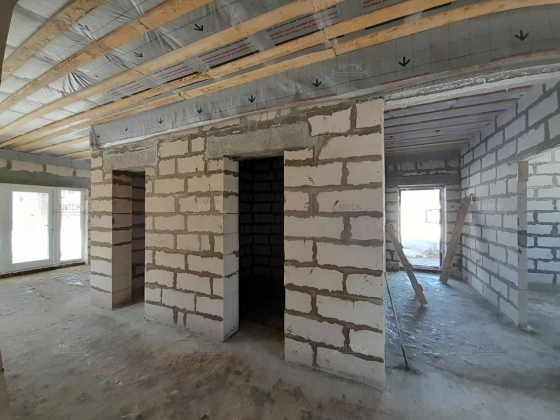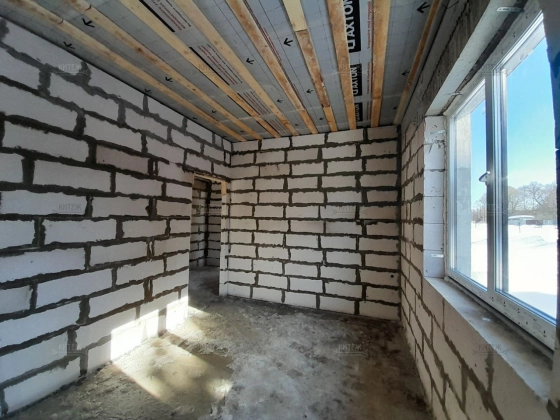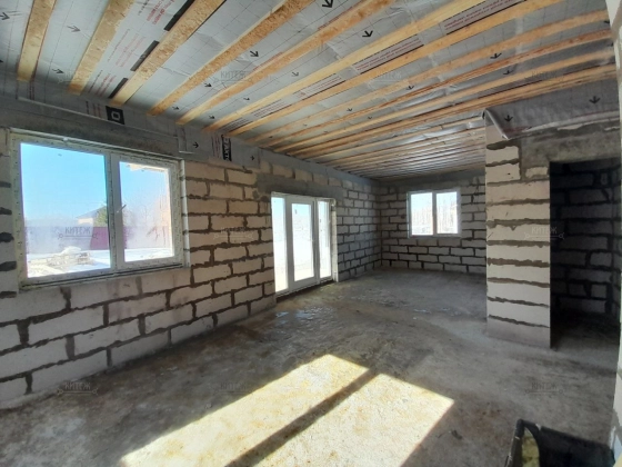 👍 стены из газобетона, установлены пластиковые окна Melke 70мм с двойным стеклопакетом и термальным напылением, крыша из многослойной мягкой черепицы. В доме два выхода, главный и на террасу.