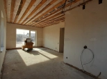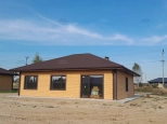 Выполнена вся черновая отделка: стяжка пола с подготовкой под теплые полы, штукатурка стен, пластиковые окна рейхау, откосы и подоконники, электроразводка, крыша металлочерепица с пароизоляцией, две кирпичные трубы вентиляции и отмостка, выполнена система ливневки.