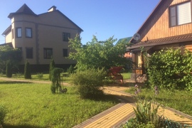 Территория участка облагорожена, граничит с лесным массивом. На участке: крытая площадка для авто, 2-этажная баня 120 кв.м. (полностью готовая), мощенные дорожки, газон, высажены плодовые деревья.