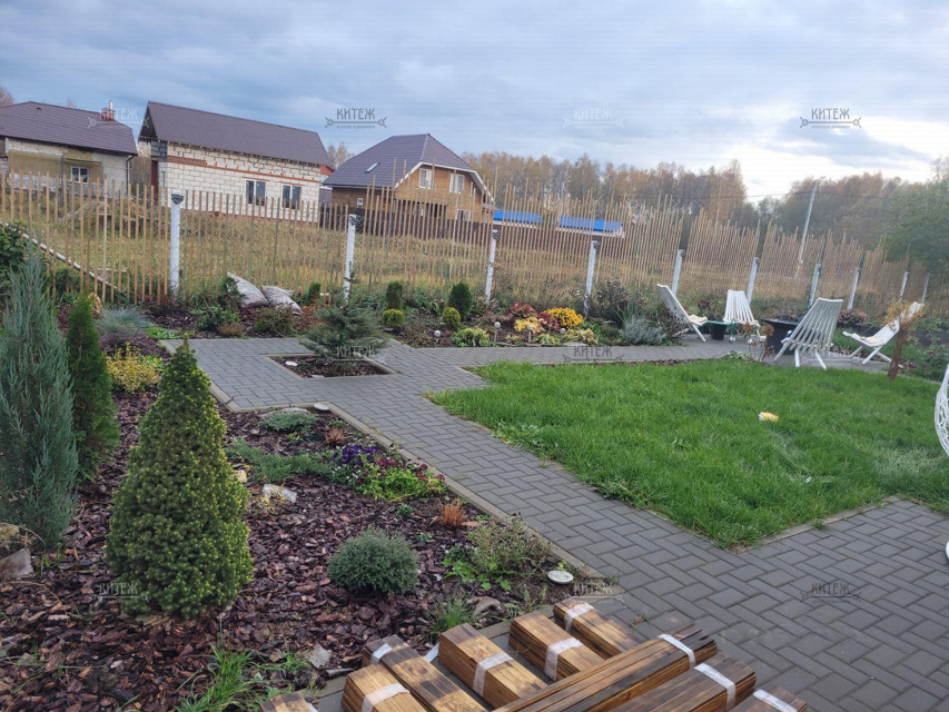 На участке плитка, ландшафтный дизайн, автоматические ворота.