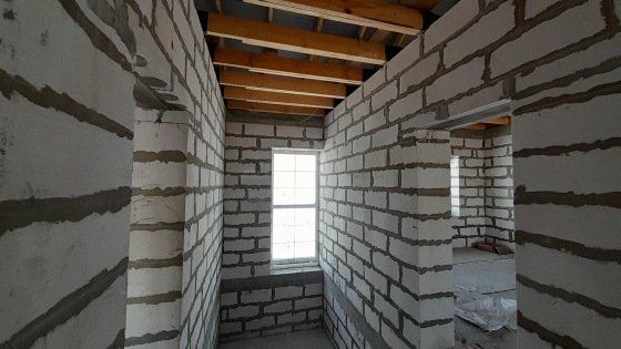 👉 Стены из газобетона «Калужский газобетон», толщина внешних стен 40см + облицовочный кирпич.