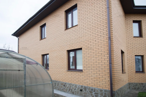 Дом 2-этажный 240 кв.м. 2017 года постройки. Второй этаж полноценный, не мансарда. Газоблок + облицовочный кирпич. Фундамент ленточный. Крыша  -  мягкая черепица.