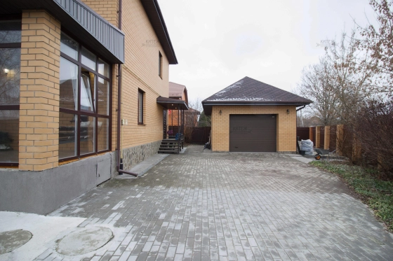 Парковка: на территории встанут две машины, в гараже одно место и  за территорией на выложенной плиткой площадке встают ещё 3 машины. Парковочные места выложены плиткой.
