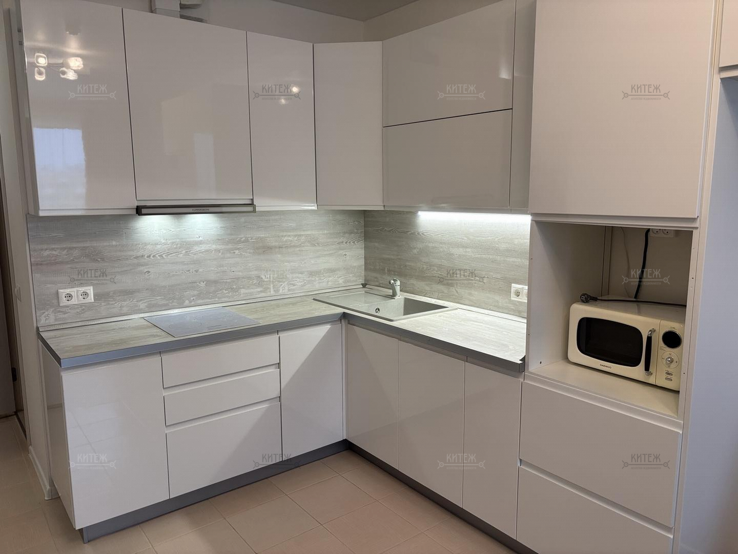 Квартира укомплектована необходимой мебелью и техникой. Кухонный гарнитур с варочной панелью и вытяжкой, холодильник, стиральная машина, микроволновая печь. Заведён интернет, подключен wi-fi роутер.
