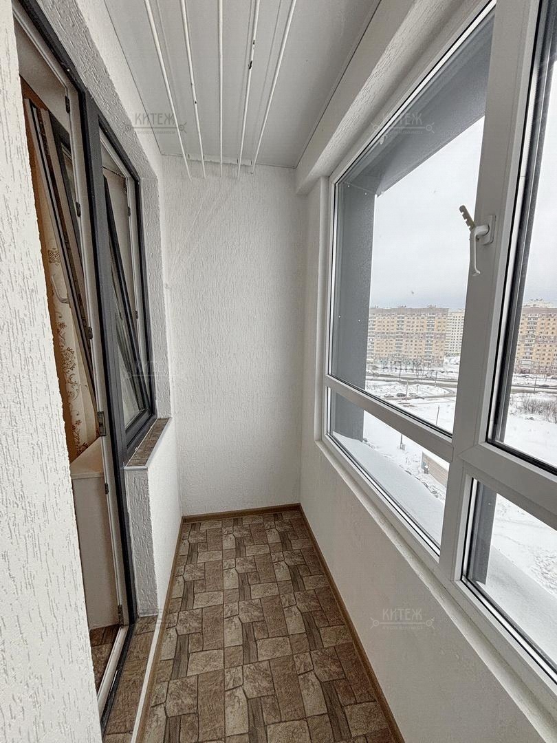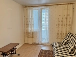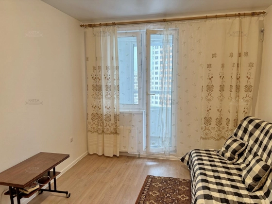 На 12 этаже сдаётся неугловая 1-комн. квартира 43 кв.м. с кухней-гостиной 18,3 кв.м. и комнатой 13,8 кв.м. Из комнаты выходит застеклённая лоджия с красивыми панорамными видами. Совмещённый санузел. Вместительная прихожая со встроенным гардеробным шкафом-купе.