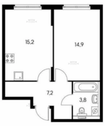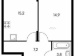 В квартире большая кухня-гостиная 15,2 кв. м., комната 14,9 кв.м, санузел совмещенный. Остается вся мебель, как на фото, и бытовая техника: телевизор, холодильник, стиральная машина авт, посудомоечная машина, электрические варочная поверхность и духовой шкаф, вытяжка и микроволновка.