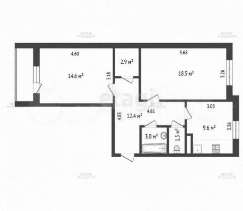 Площадь кухни, кв.м.9.6
