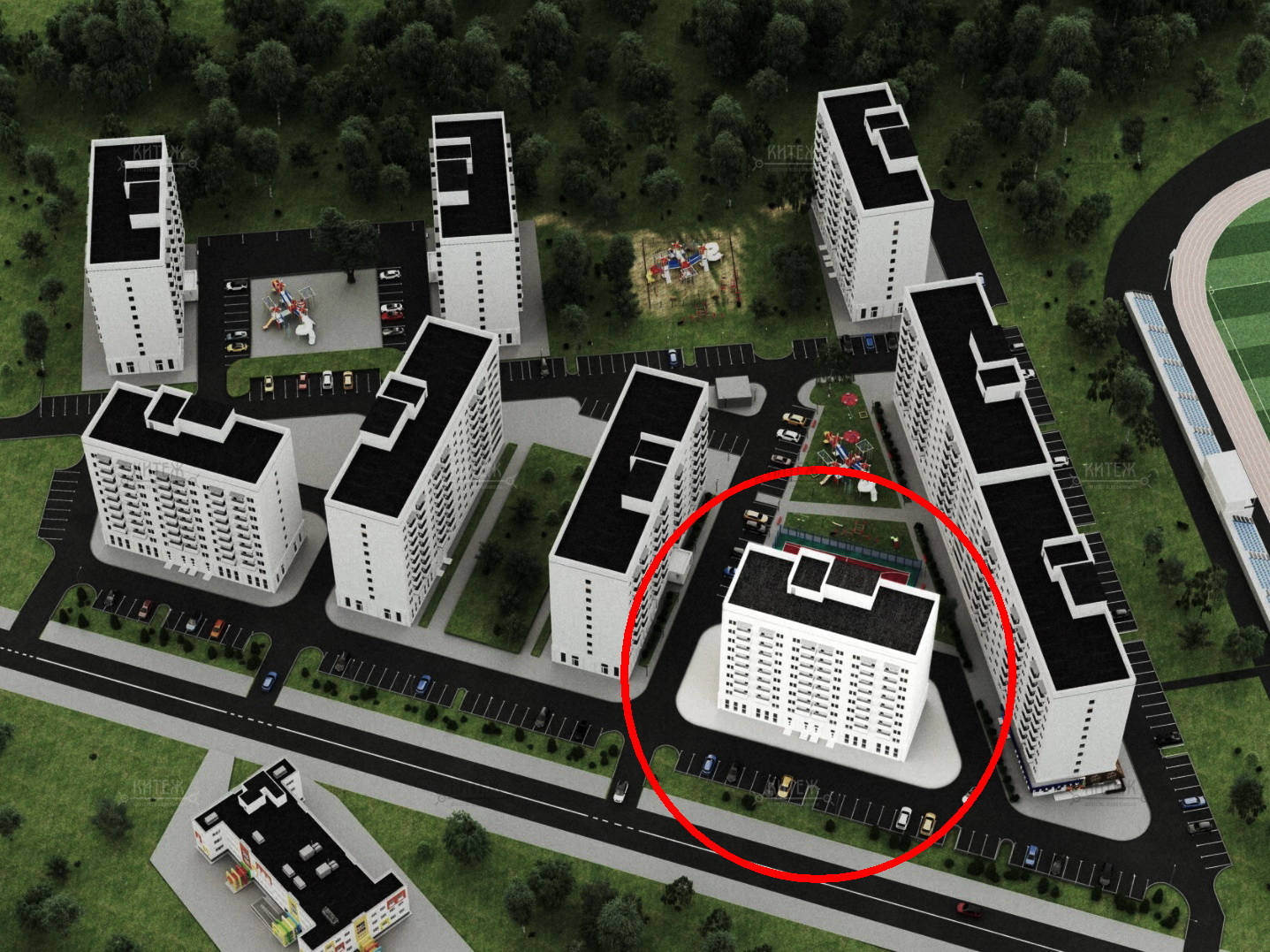 + Уникальное расположение в зелёной зоне, в стороне от активной проезжей части, позволит поддерживать физическое здоровье и внутреннее состояние каждого жителя.