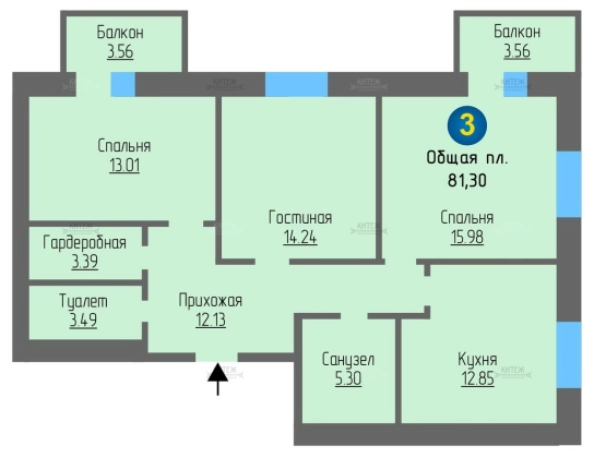 3-комн. квартира с гардеробной, двумя балконами, и чистовой отделкой.