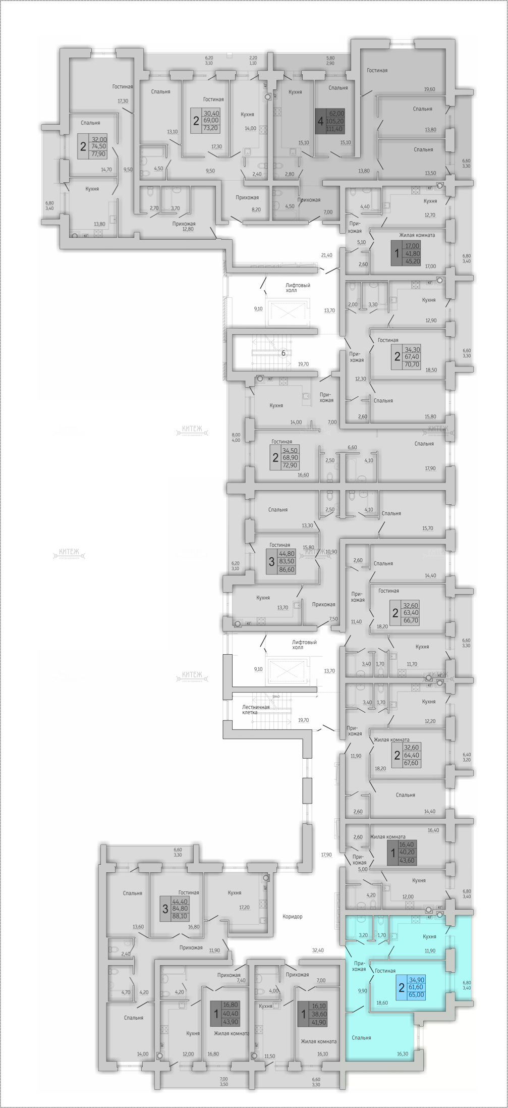 В избранное 2к 65 м2, 4/9 эт. Резванская