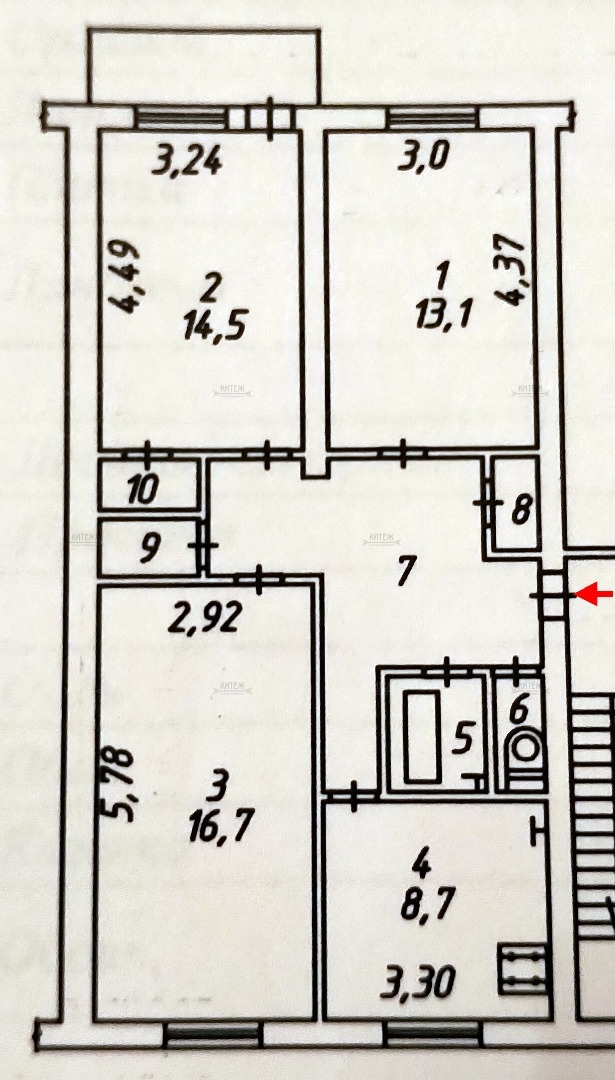 | Жилая площадь | 44.3 |
