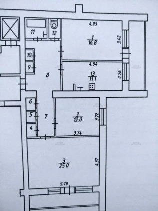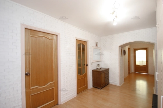 На 4 этаже продаётся 3-комн. квартира 86 кв.м. (общая площадь без учёта двух лоджий). С лоджиями площадь квартиры получается 99,8 кв.м. Изолированные комнаты 25 + 16,8 + 12 кв.м. Кухня 11,1 кв.м. Раздельный санузел. Просторная прихожая с коридором, где разместились вместительные встроенные шкафы. 2 большие застеклённые лоджии по 7 кв.м. с полной отделкой, остекление - профиль ПВХ.