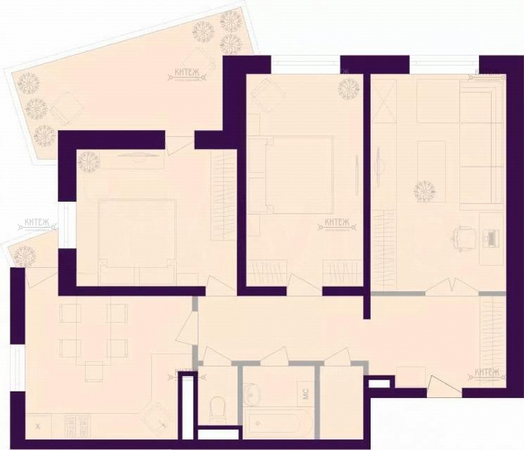 Тип комнатраздельные