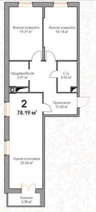 2-к. 77,5 м2 9/9, ЖК Палладио