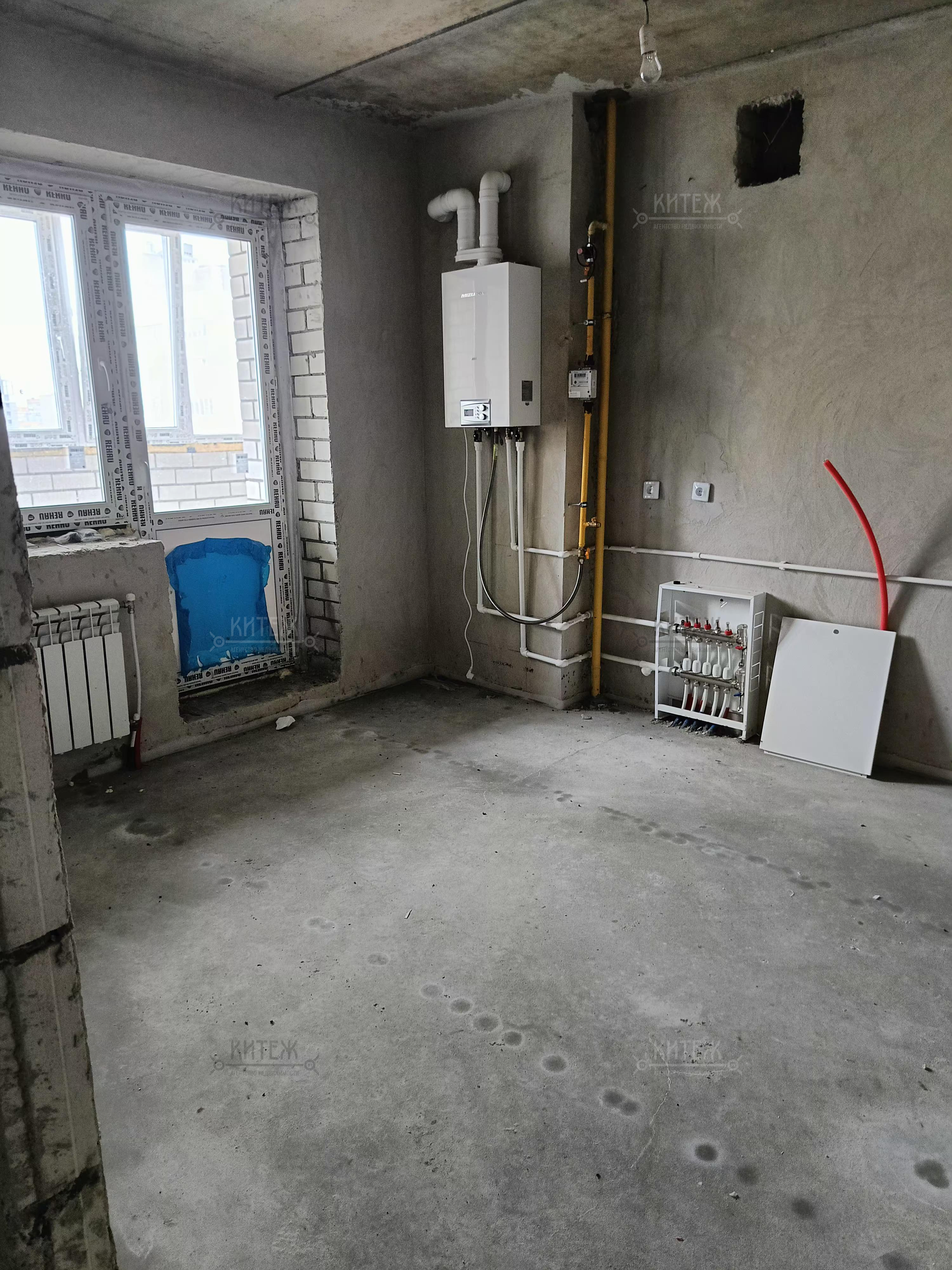 Стяжка пола,  штукатурка стен, электроразводка ,батареи и котел