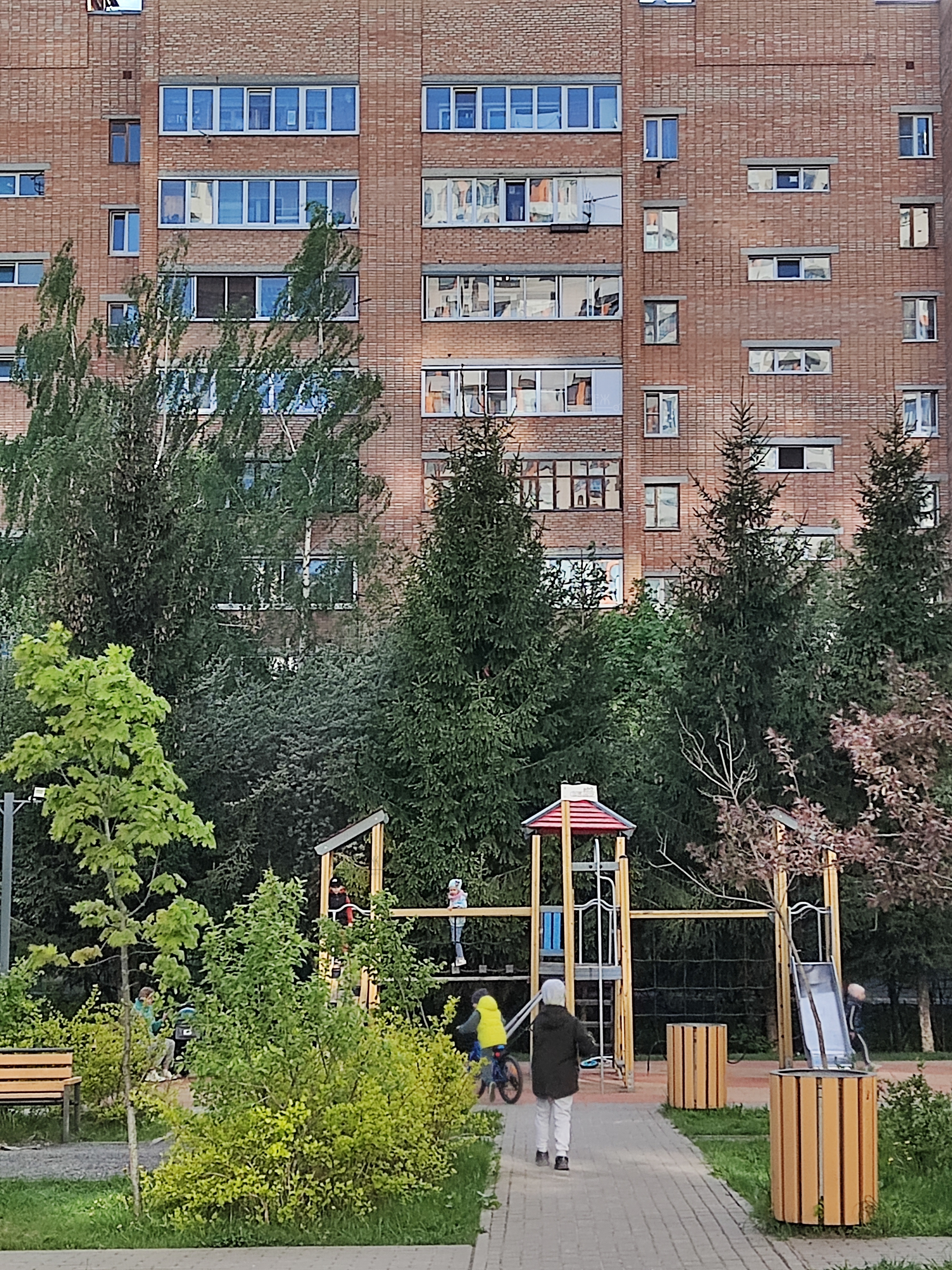 Во дворе большое парковочное пространство. Придомовая территория, подъезды, парковочное пространство оборудованы камерами видеонаблюдения. Рядом с домом детские площадки, торговый центр, садик, школа в шаговой доступности. Также в микрорайоне расположен горнолыжный комплекс Квань, бассейн, ледовый дворец, зоопарк Биосфера
