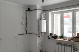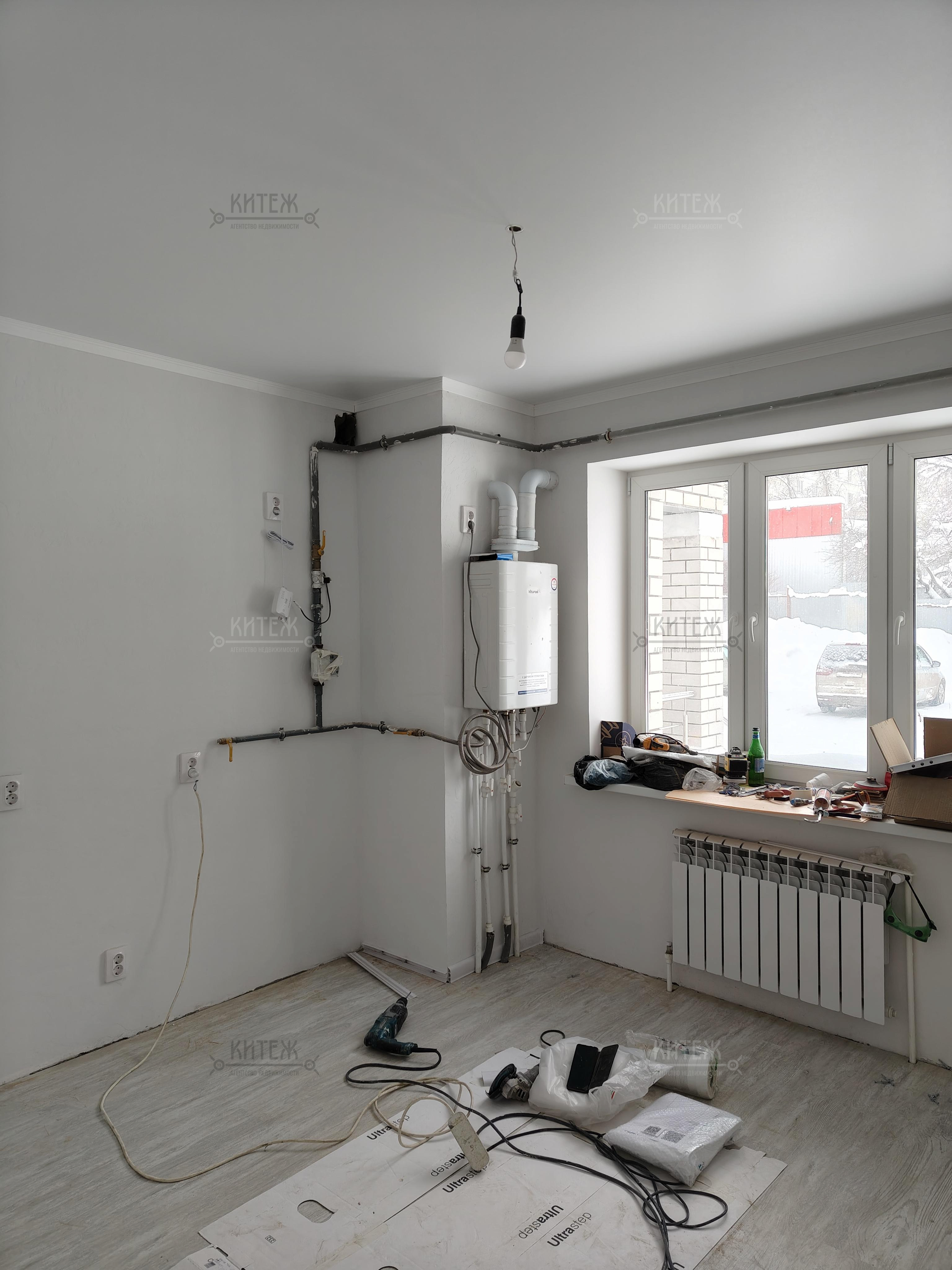 Разведена электрика по всей квартире с выключателями и розетками , установлены котел и радиаторы отопления .
