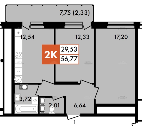 Площадь, кв.м.56.77