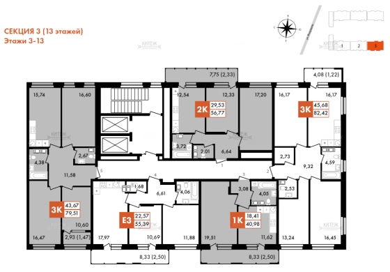 2к 56,8 м2, Первый на Правом