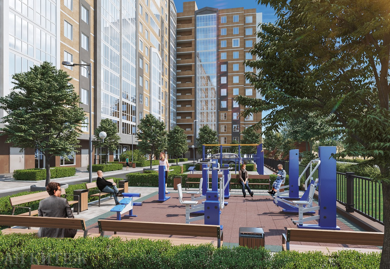 Планируется закрытая территория с парковочной территорией, в зеленых дворах, высаженных ростовыми деревьями, будут обустроены современные спортивные и детские площадки фирмы ХАГС с отведенной прогулочной. На первых этажах будут располагаться кафе, салоны красоты и другие современные сервисы. Подземный паркинг на 96 машиномест, (Стоимость машиноместа в отапливаемом подземном паркинге 800 тыс. руб.), позволит эффективно заботиться о своих авто и создаст дополнительный комфорт всем жильцам, а в дополнение к подземному паркингу застройщик позаботился о достаточном количестве парковочных мест на придомовой территории.