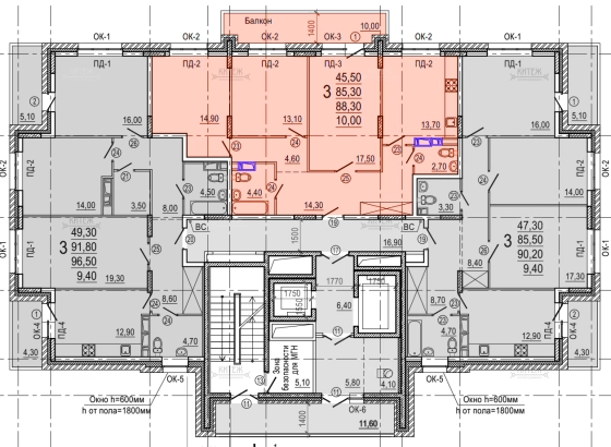 В продаже 3-комн. квартира 85,3 кв.м.с изолированными комнатами 17,5 + 14,9 + 13,1 кв.м. и кухней 13,7 кв.м. Два санузла. Вместительная прихожая с местом под шкаф-купе. Огромный балкон 10 кв.м.! Высота потолков 3 м. Окна смотрят НЕ на дорогу.