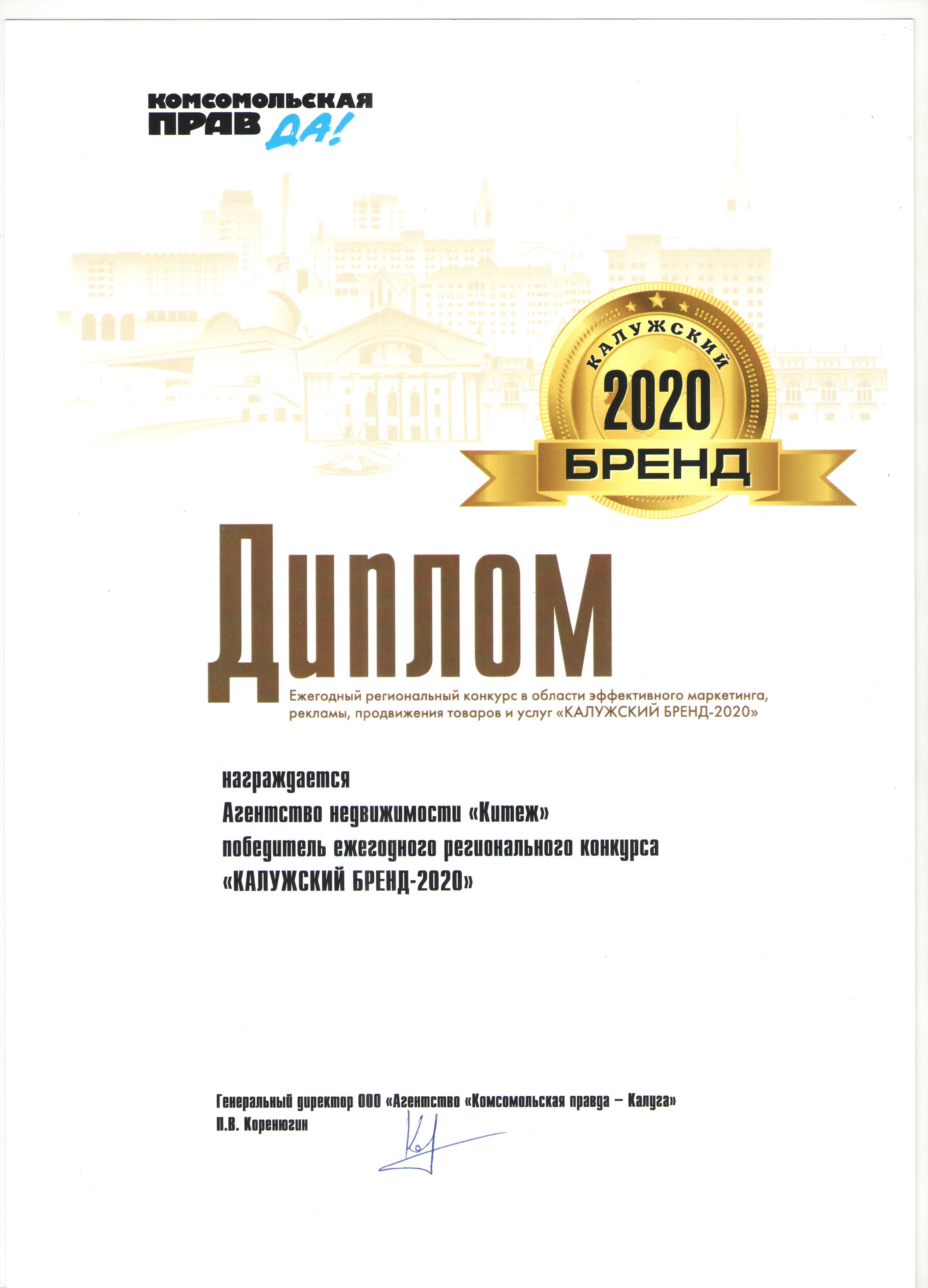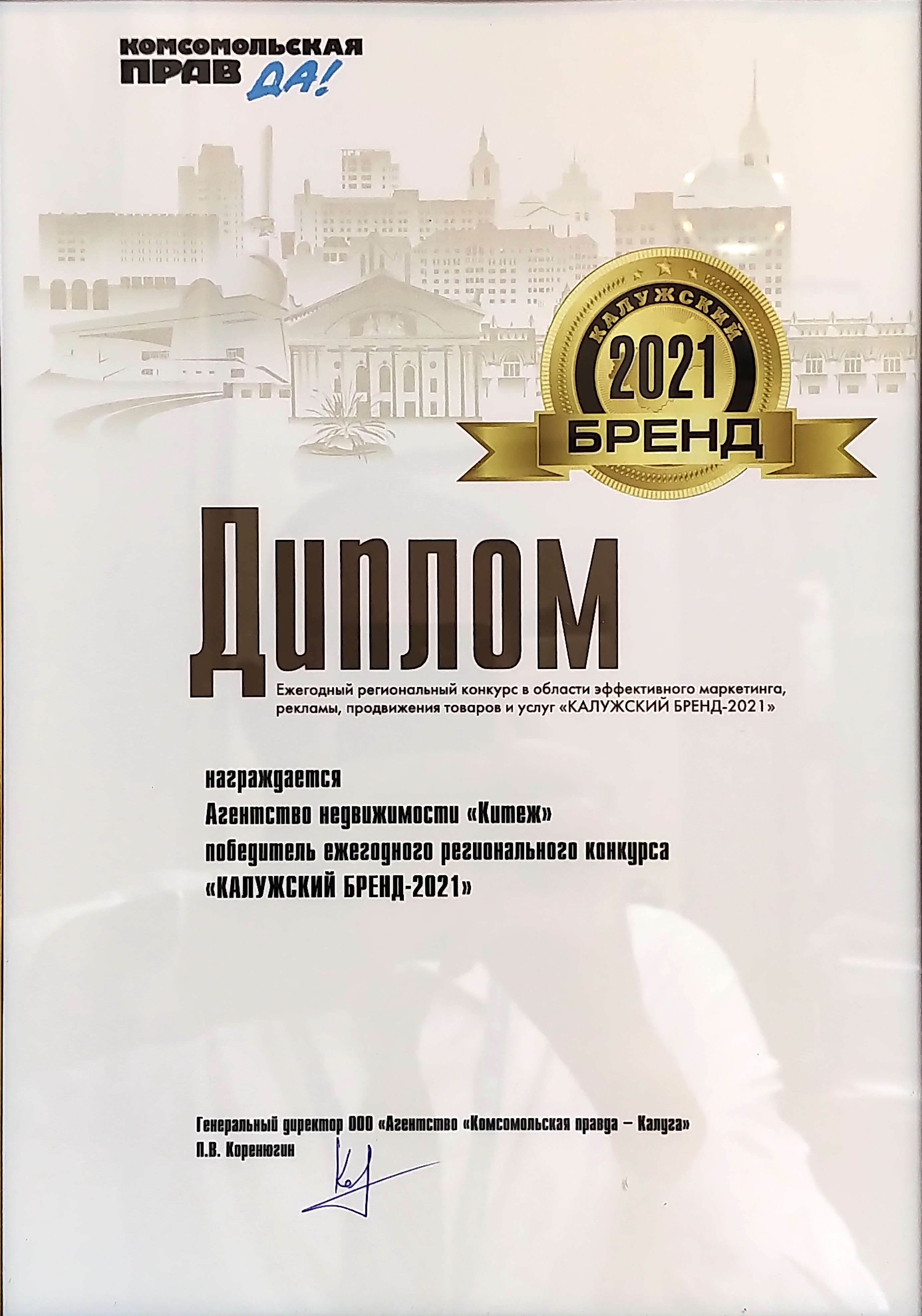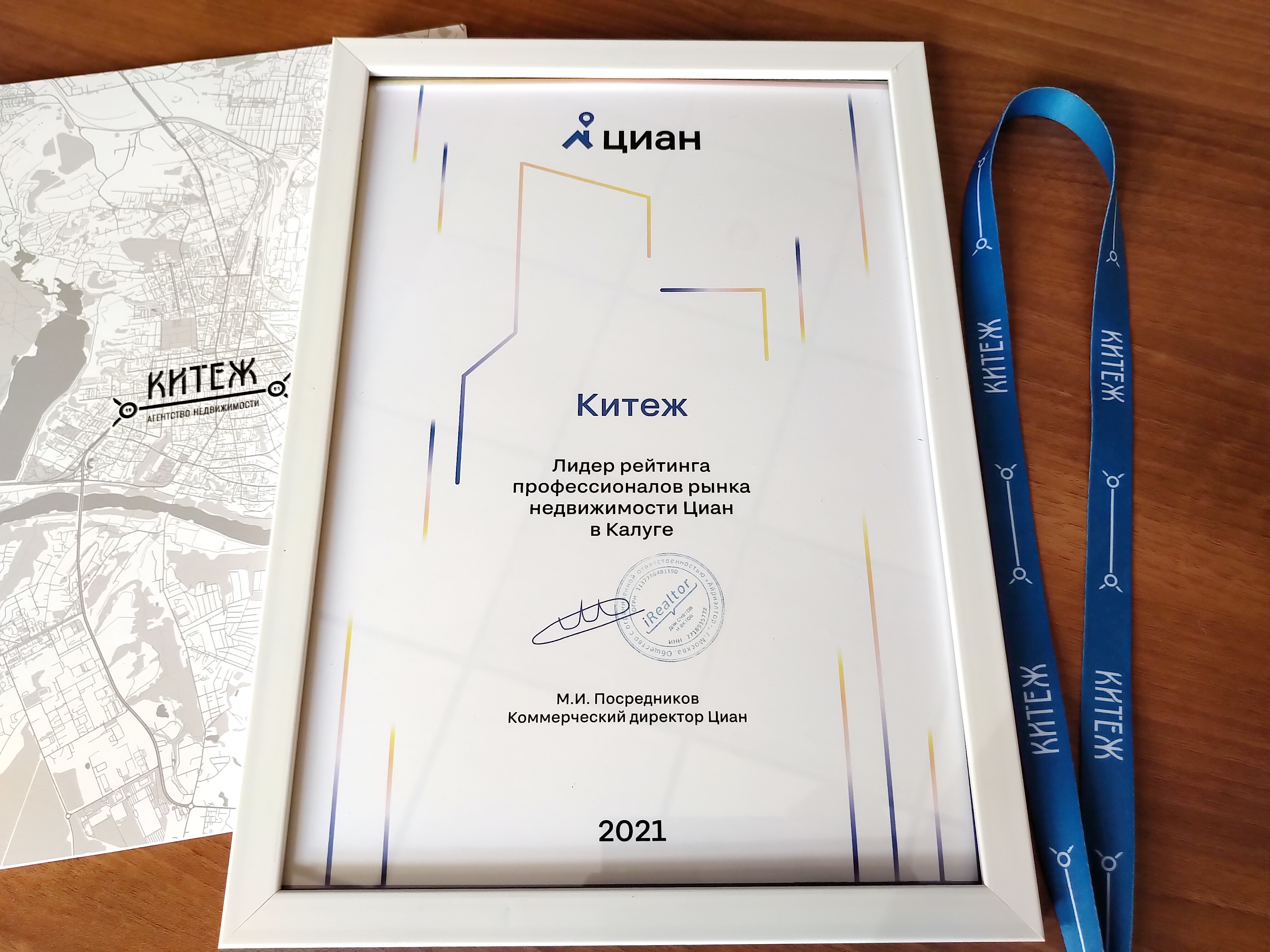 - 2021 год. Лидер рейтинга профессионалов рынка недвижимости ЦИАН в Калуге.