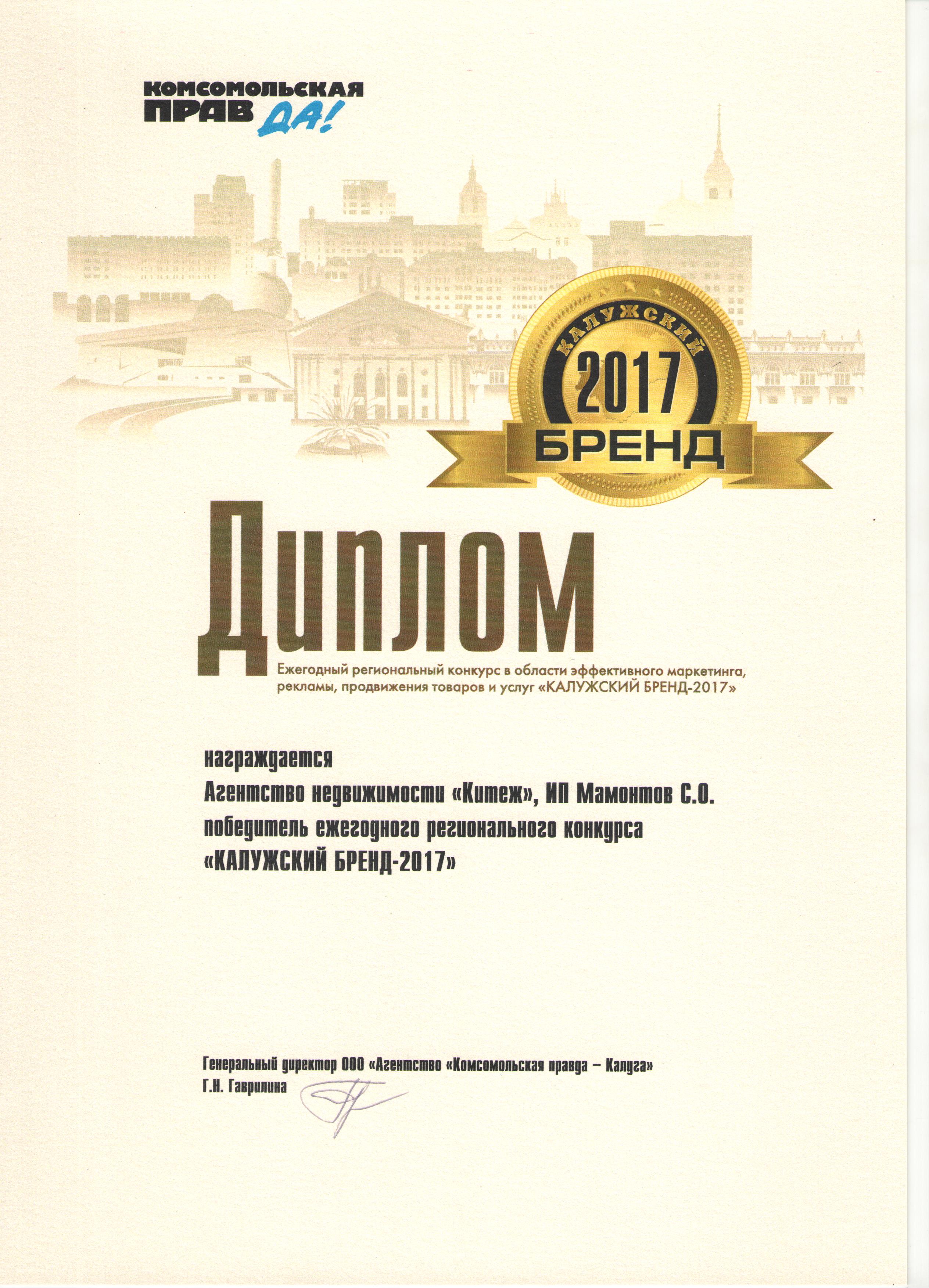 - 2022 год. Лидер рейтинга профессионалов рынка недвижимости и рынка коммерческой недвижимости ЦИАН в Калужской области.