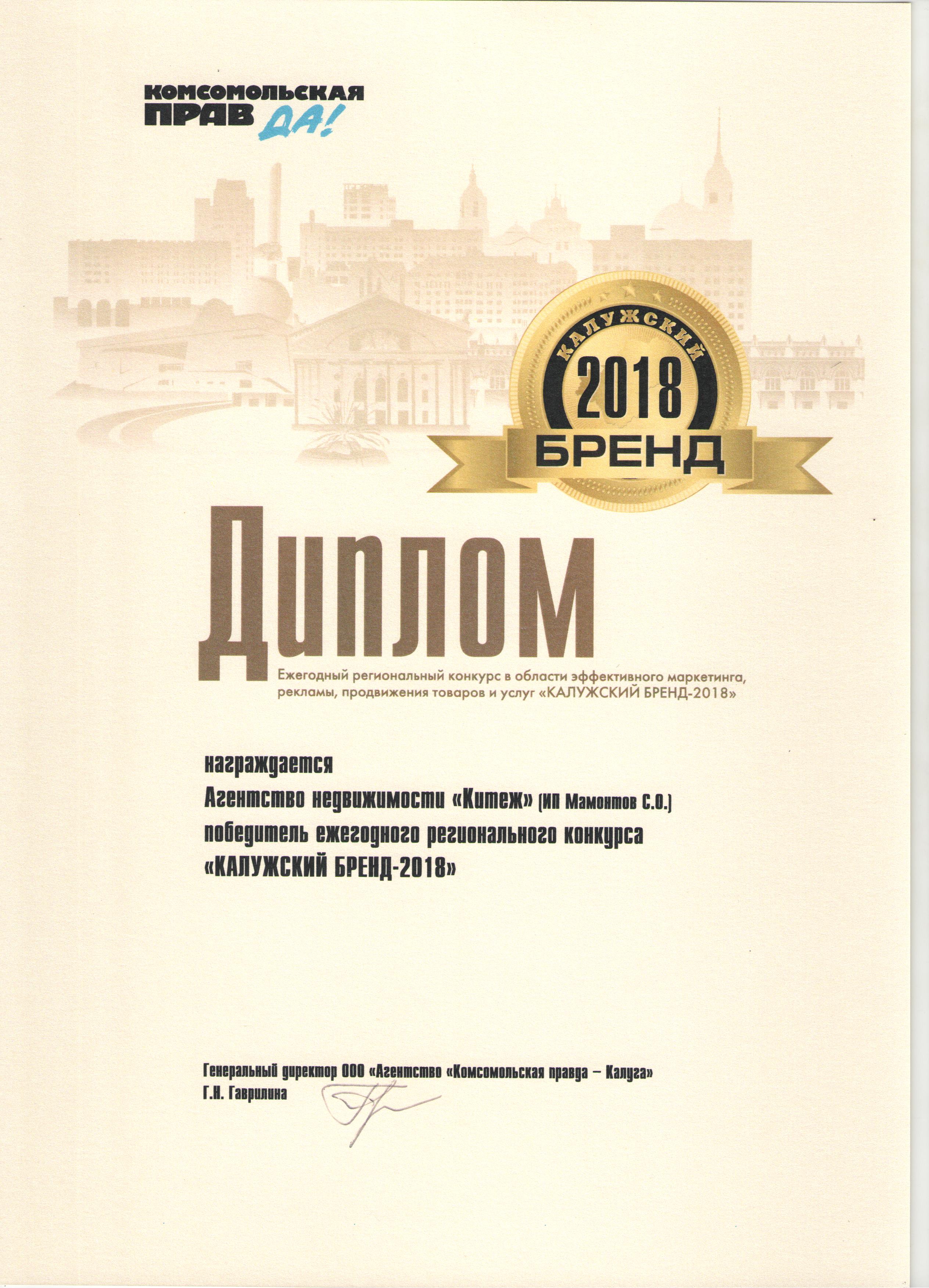 - 2018 год. Премия Калугахауса. Победитель в номинации "Агентство Недвижимости".