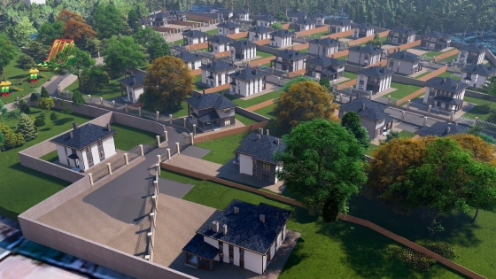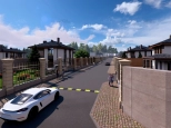 Закрытая территория со входной группой. Асфальтированные дороги. Освещенные улицы. Коммуникации под землей (электричество, газ, центральное водоснабжение).