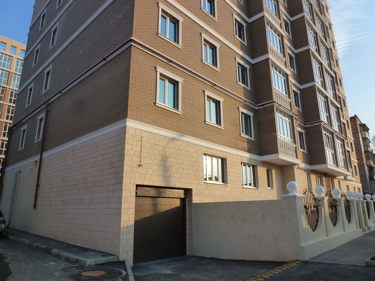 Дома монолитные с наружными стенами из керамических блоков с утеплителем и облицовкой кирпичом. Дизайн от итальянского архитектурного бюро. Подземная парковка на 74 машиноместа с лифтом на этаж. Дом сдан.