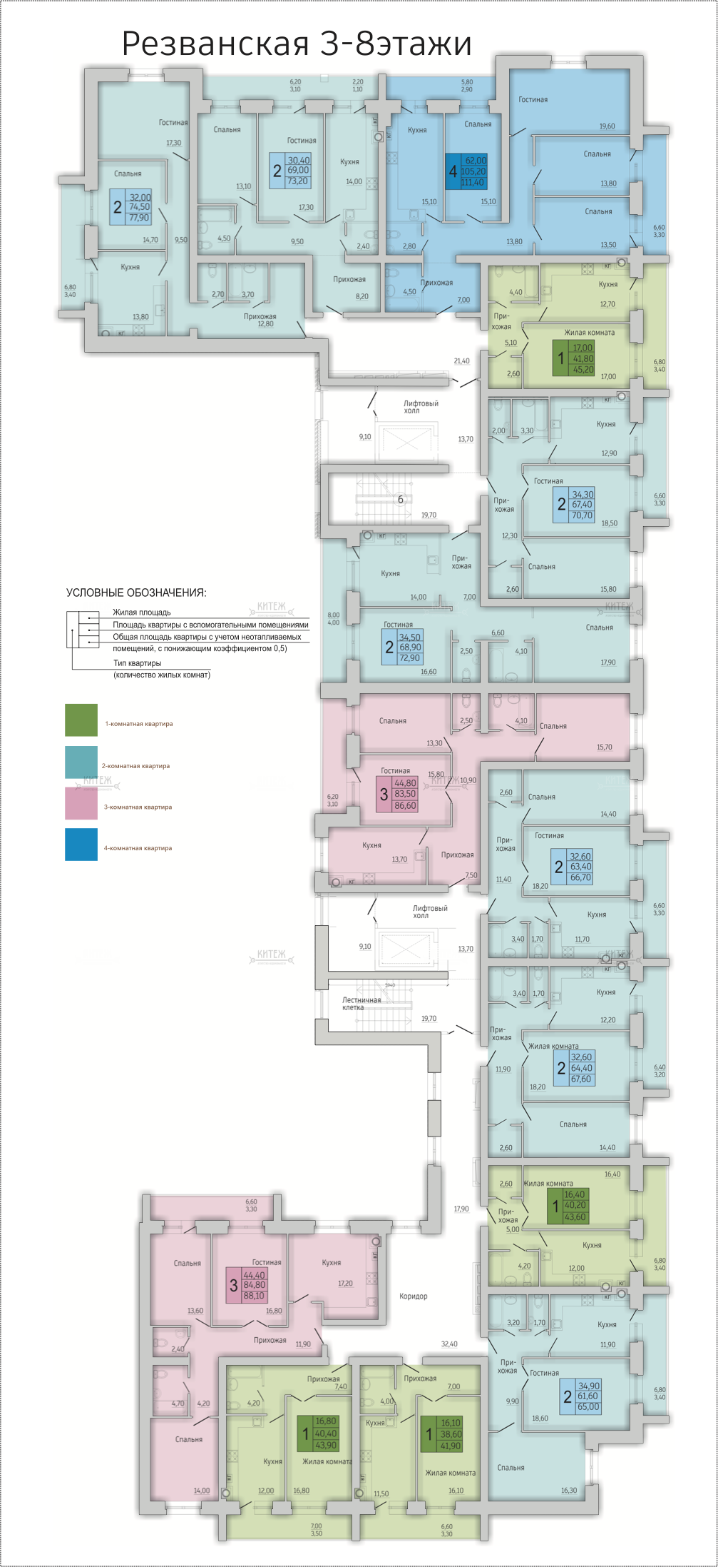 2 корпуса. 9 этажей. Площадь квартир от 42 до 111,4 кв.м.